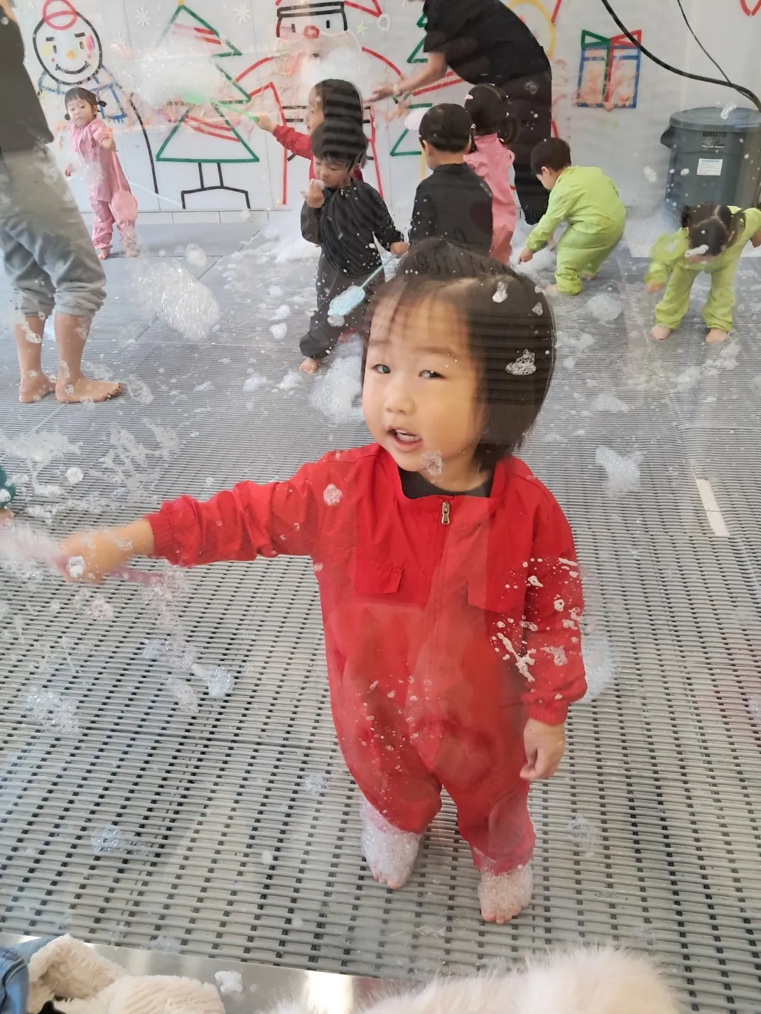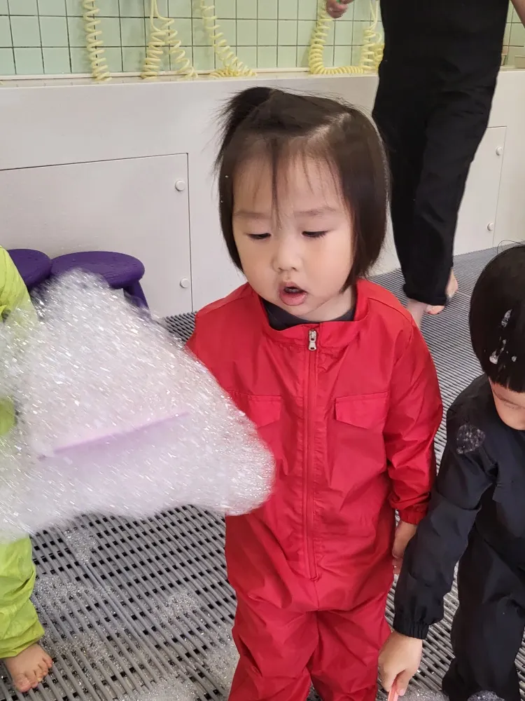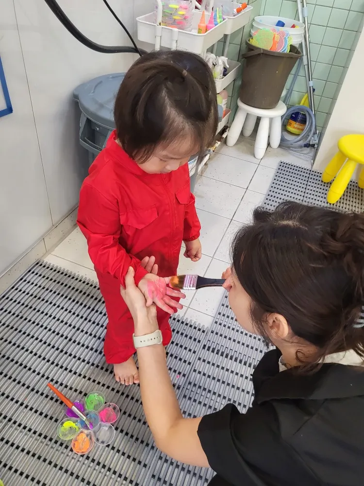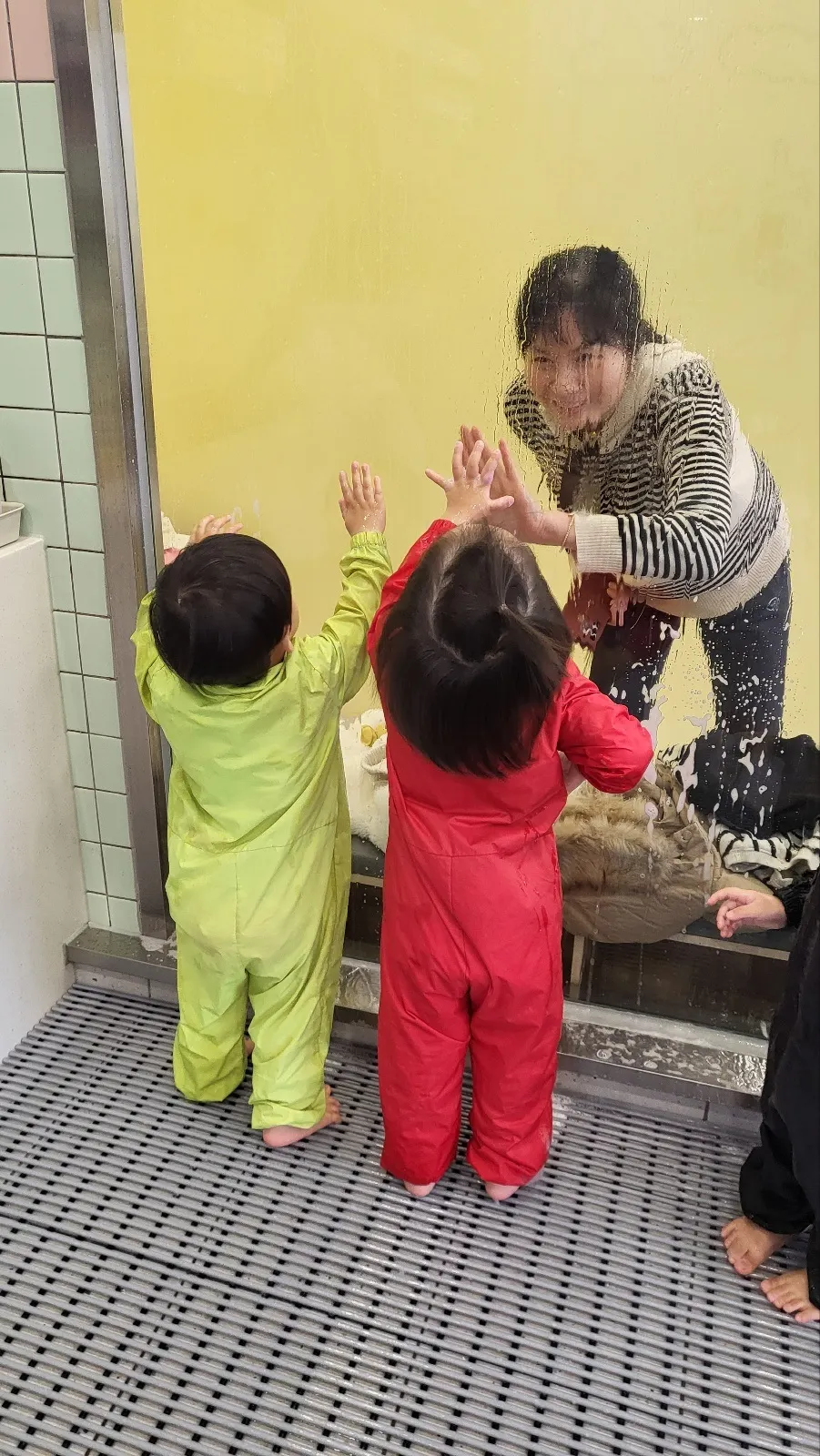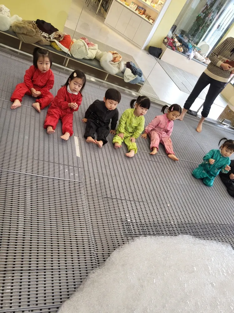 한 명씩 깨끗이 씻고 반팔 젖은 친구는 반팔 벗고 겉옷만 입히고 여벌옷(내복)인친구만 내복 입히고 겉옷 입혔답니다~