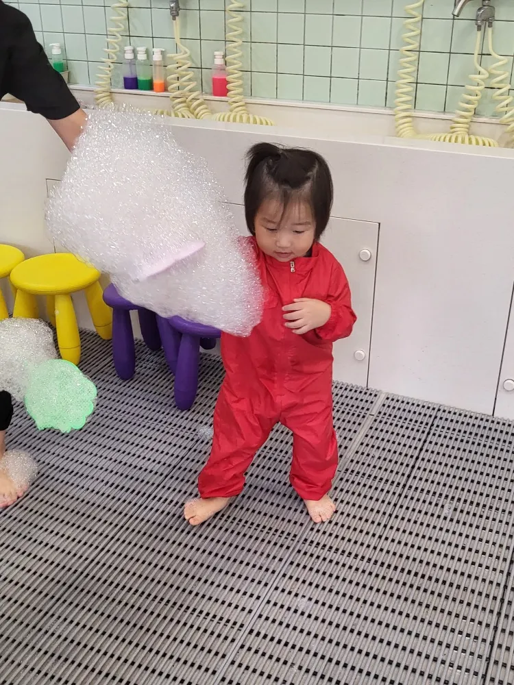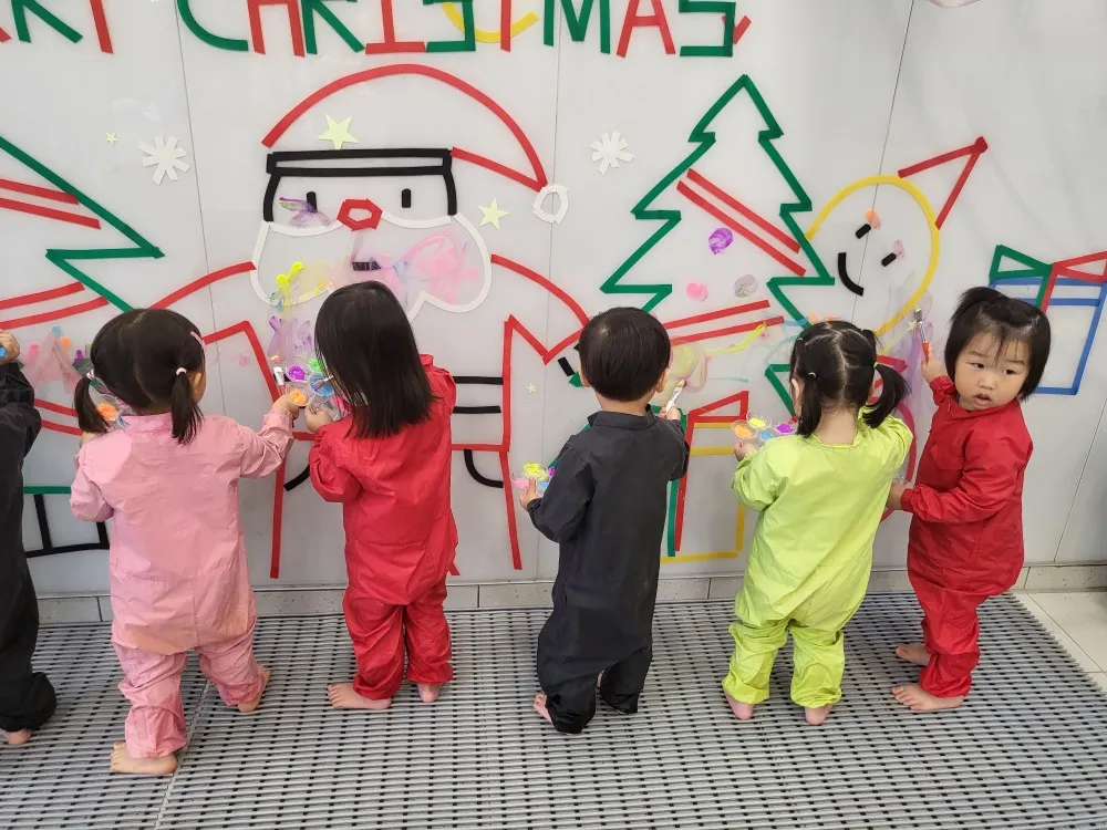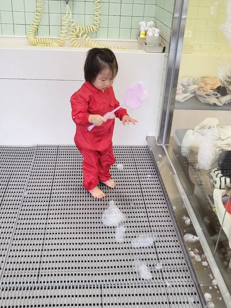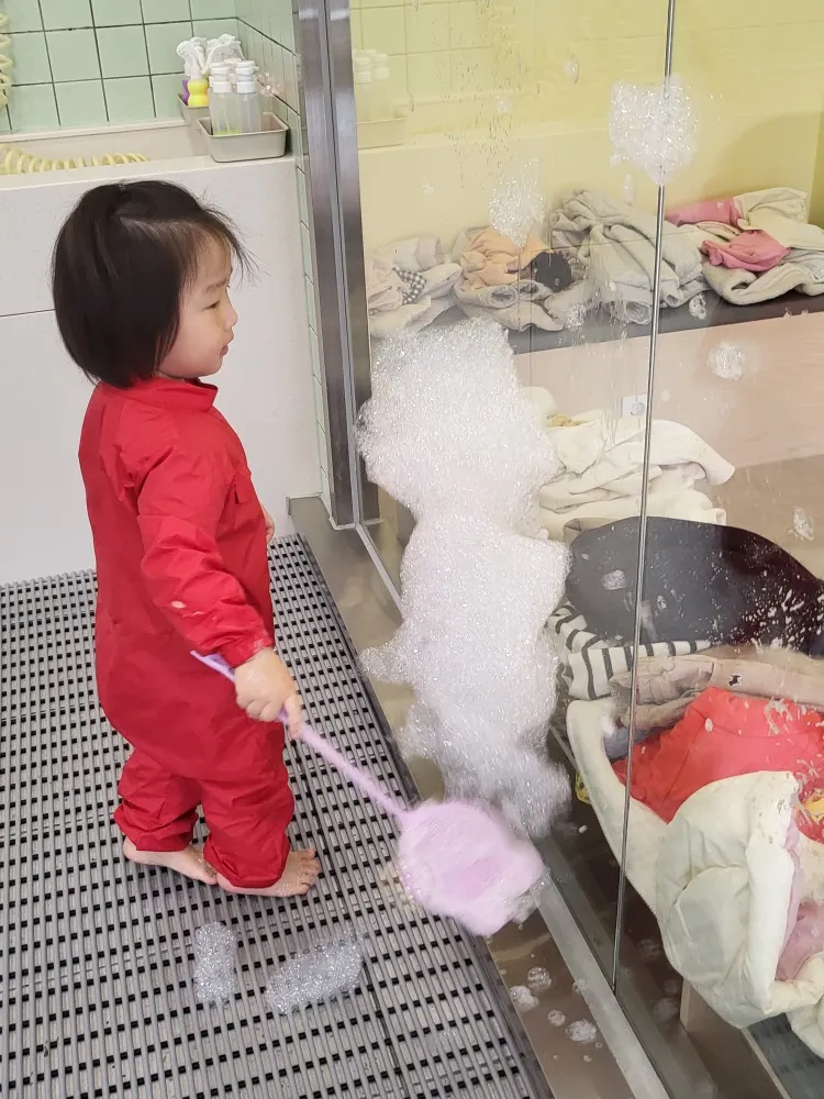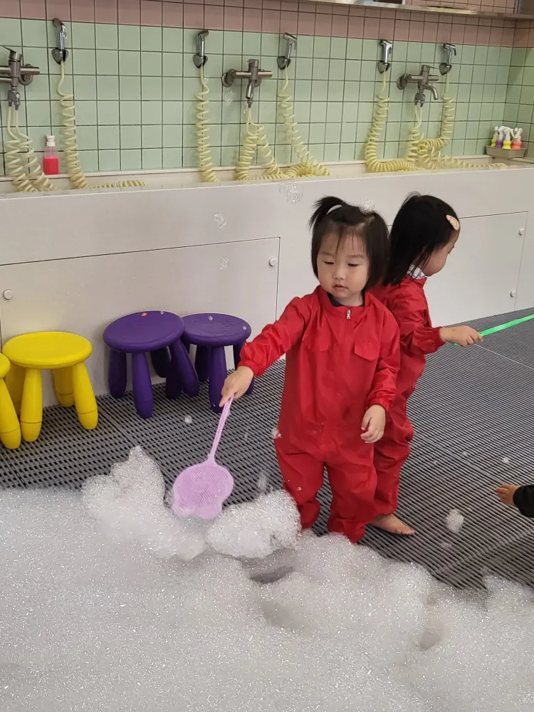 한 명씩 깨끗이 씻고 반팔 젖은 친구는 반팔 벗고 겉옷만 입히고 여벌옷(내복)인친구만 내복 입히고 겉옷 입혔답니다~