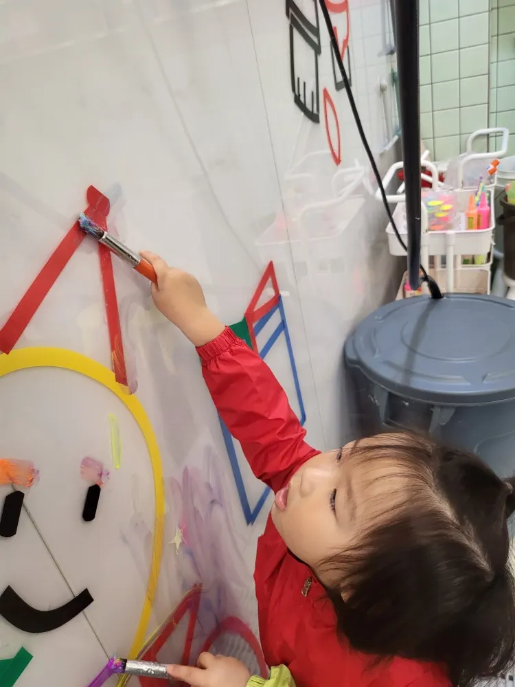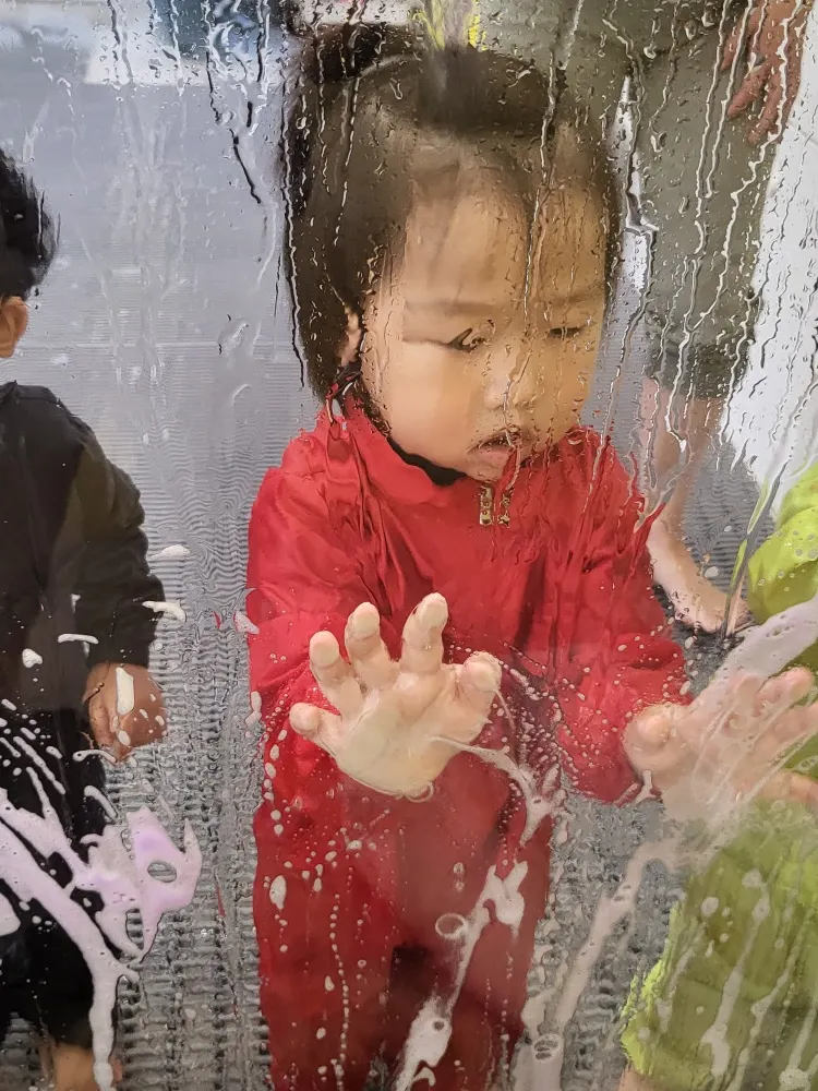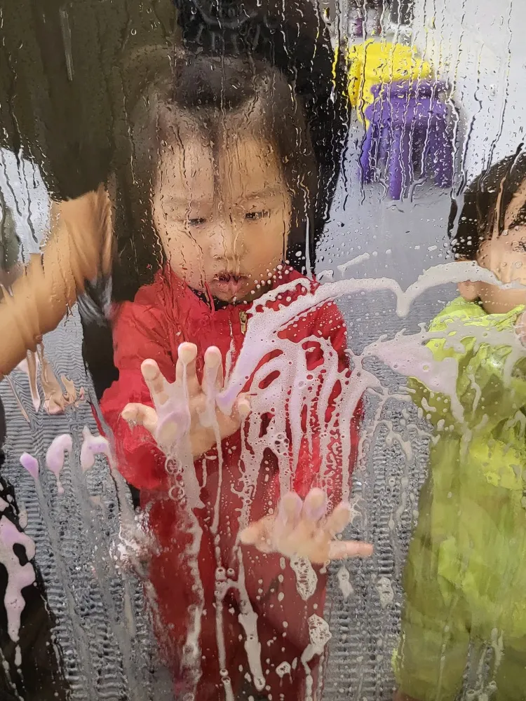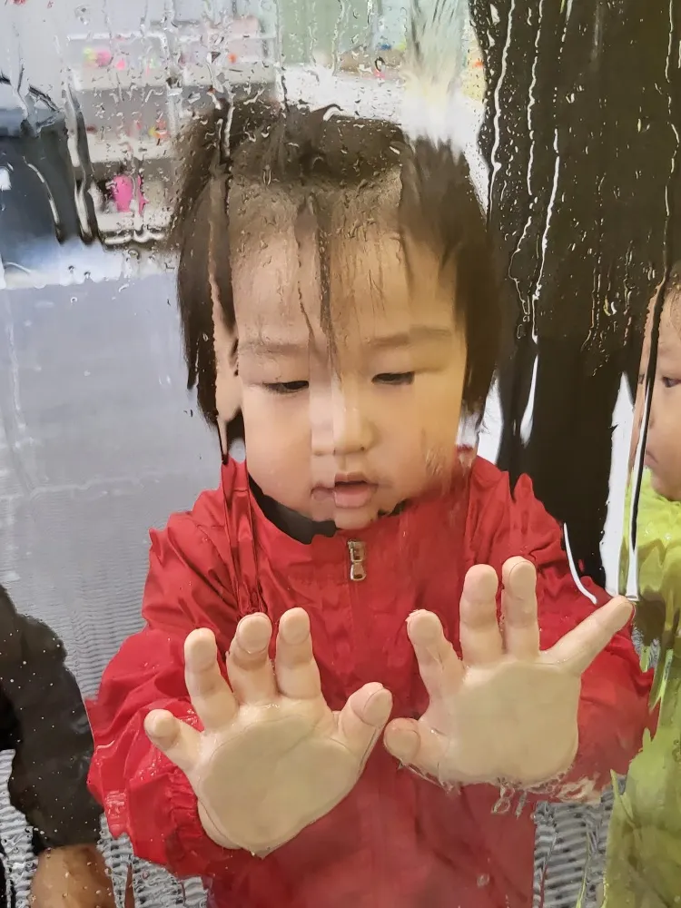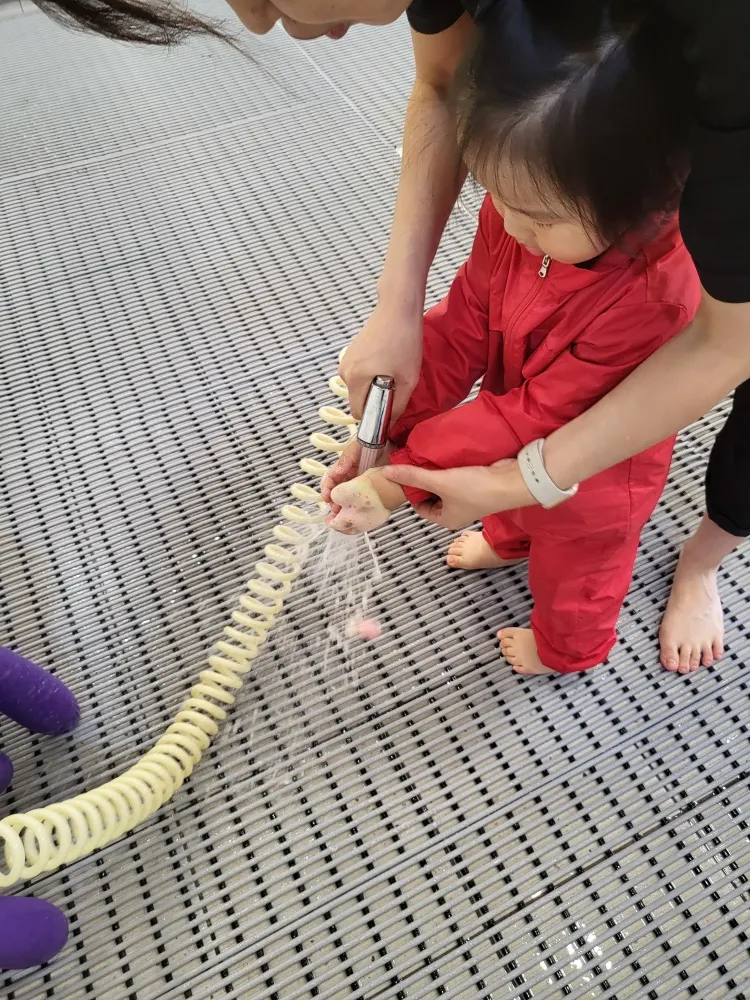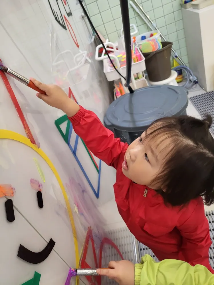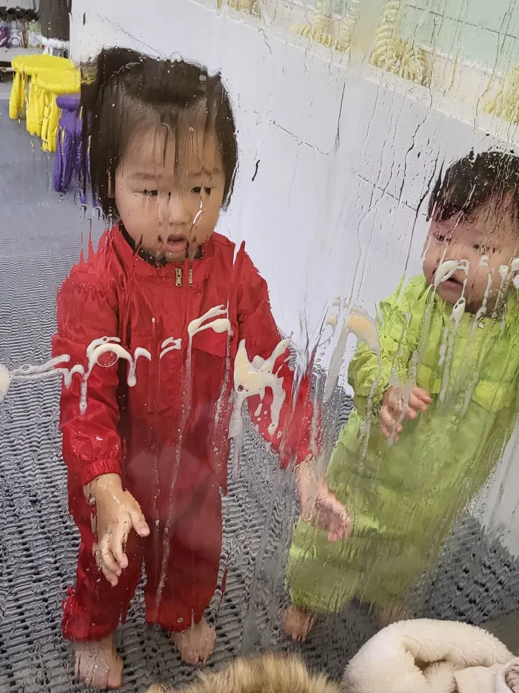 놀이 끝난 후 창문에 나오는 물 바라보며 손도 씻고 창문도 닦으며 마무리~