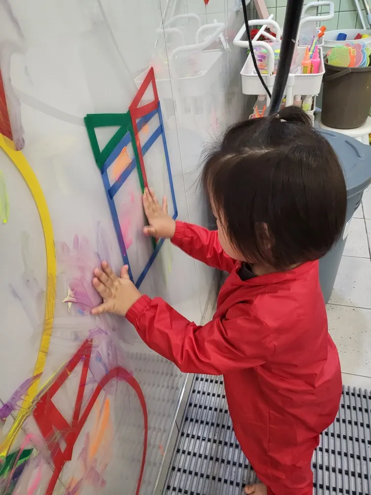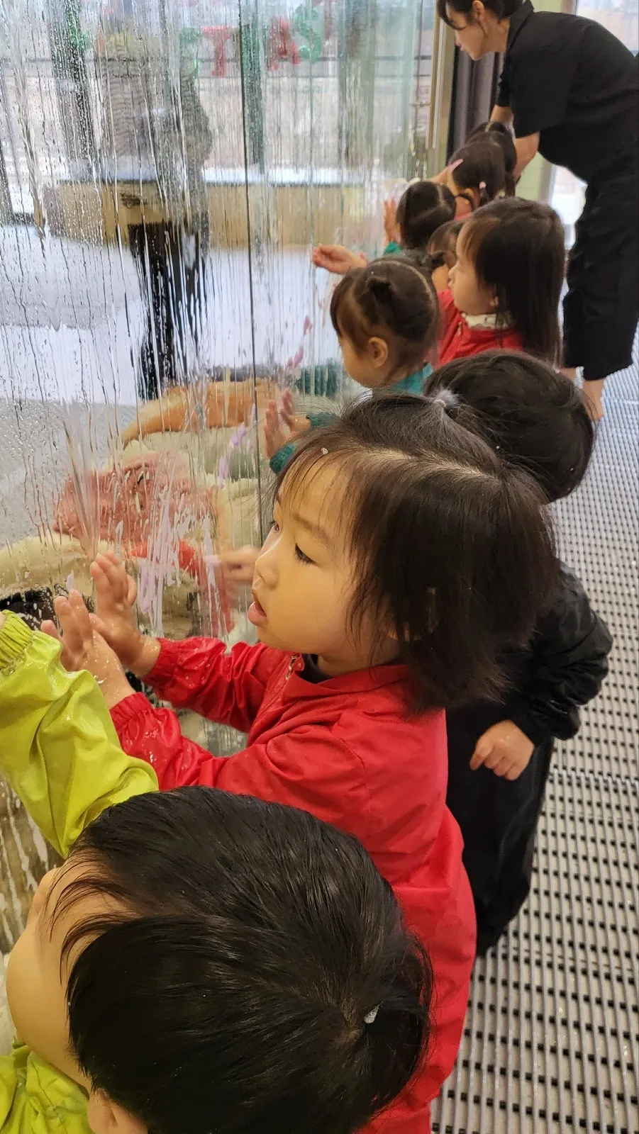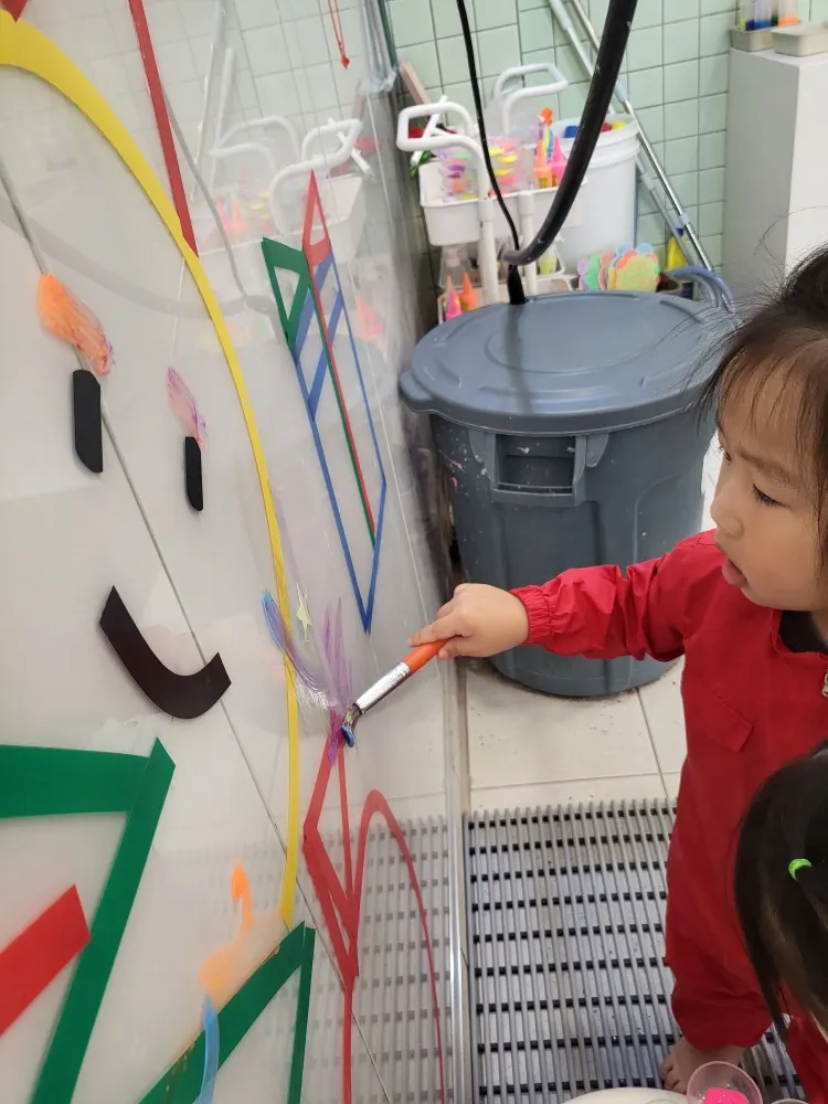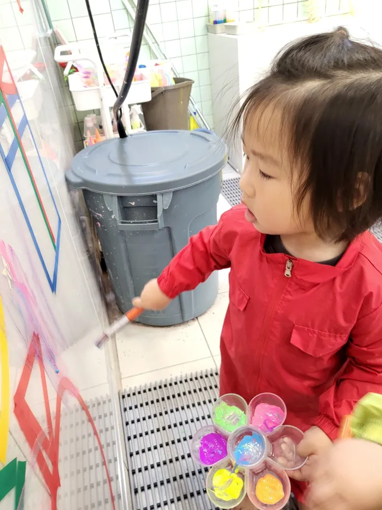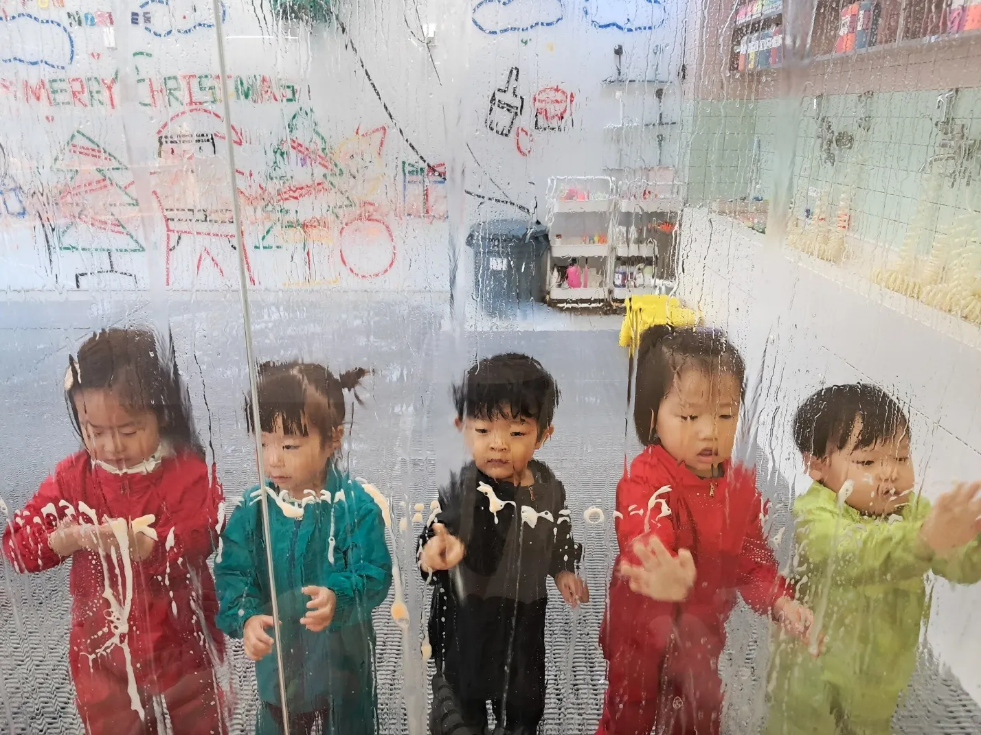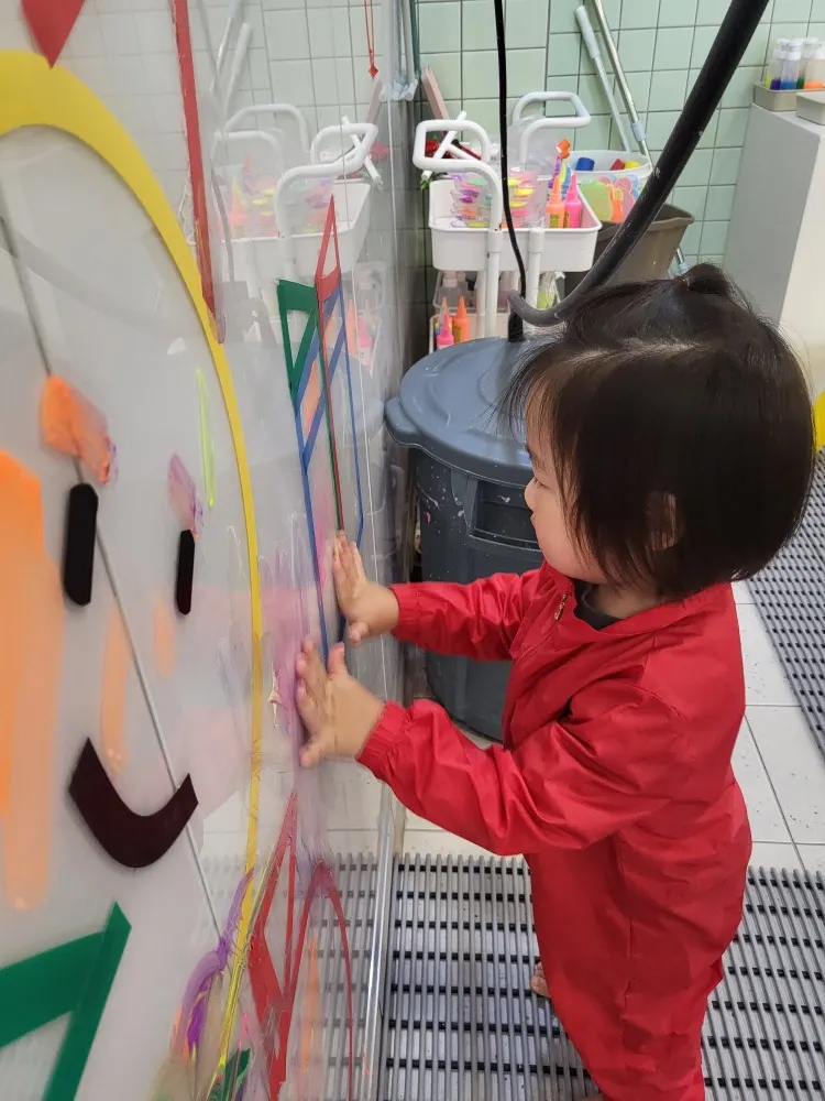 놀이 끝난 후 창문에 나오는 물 바라보며 손도 씻고 창문도 닦으며 마무리~