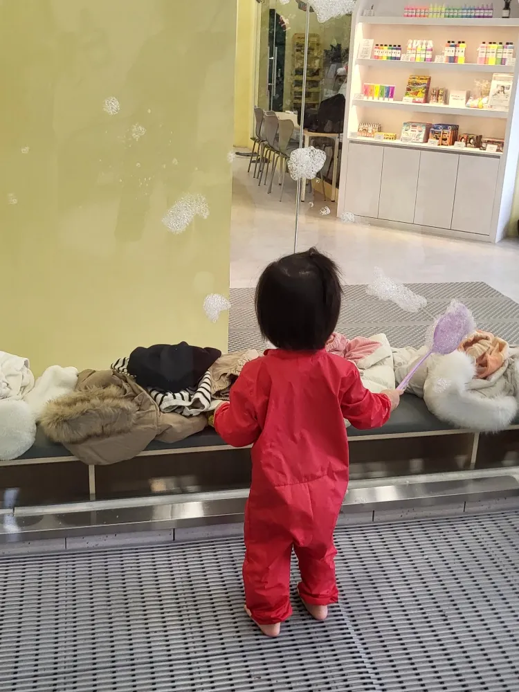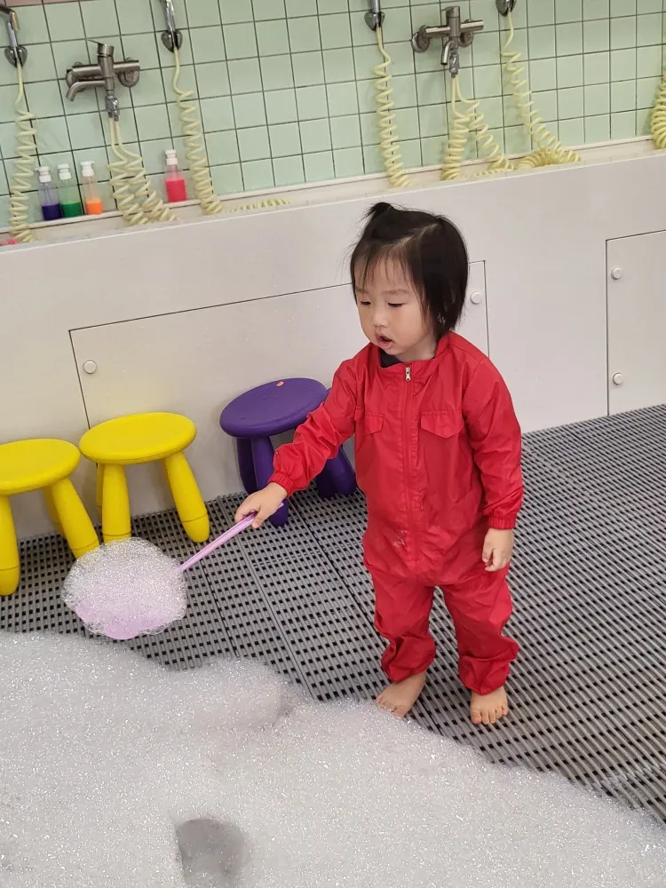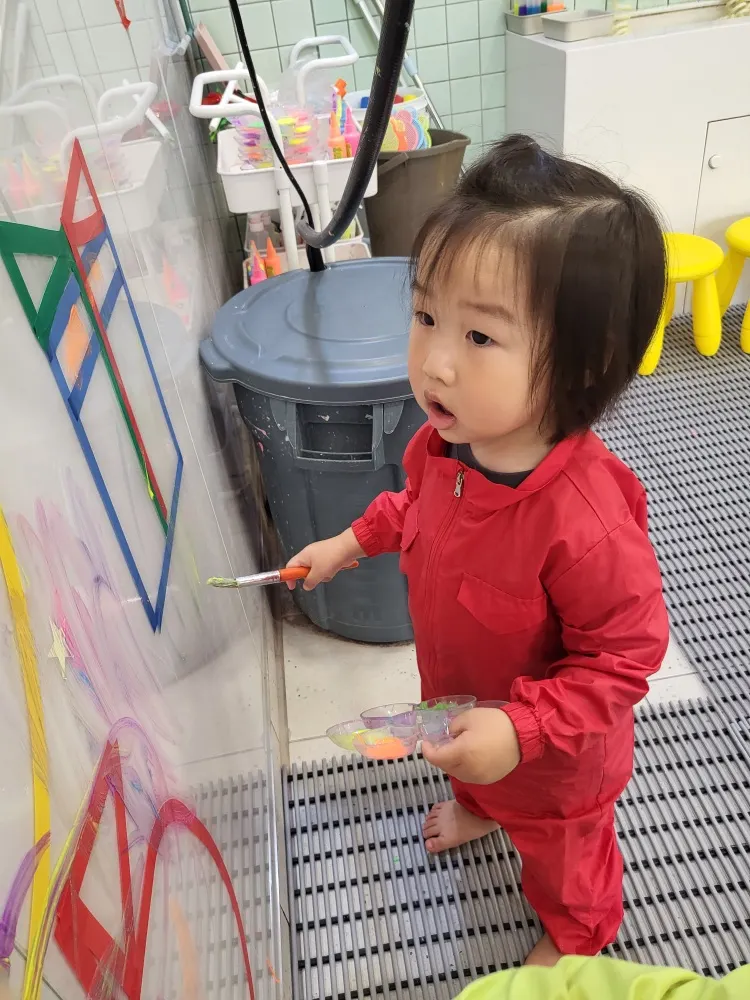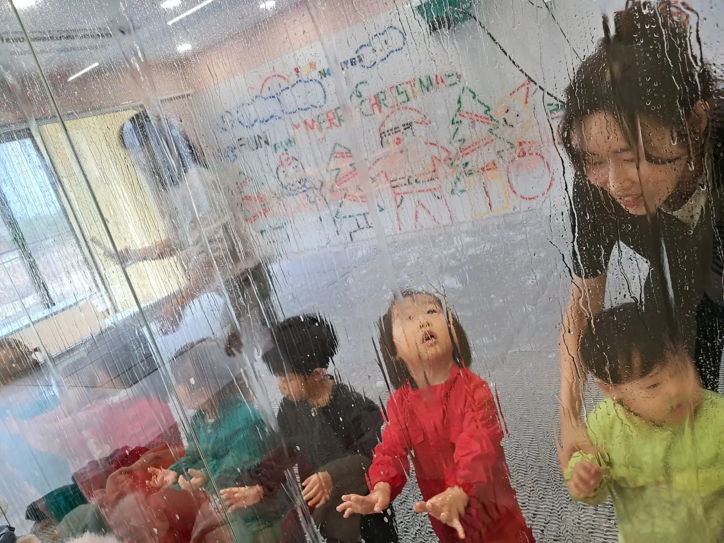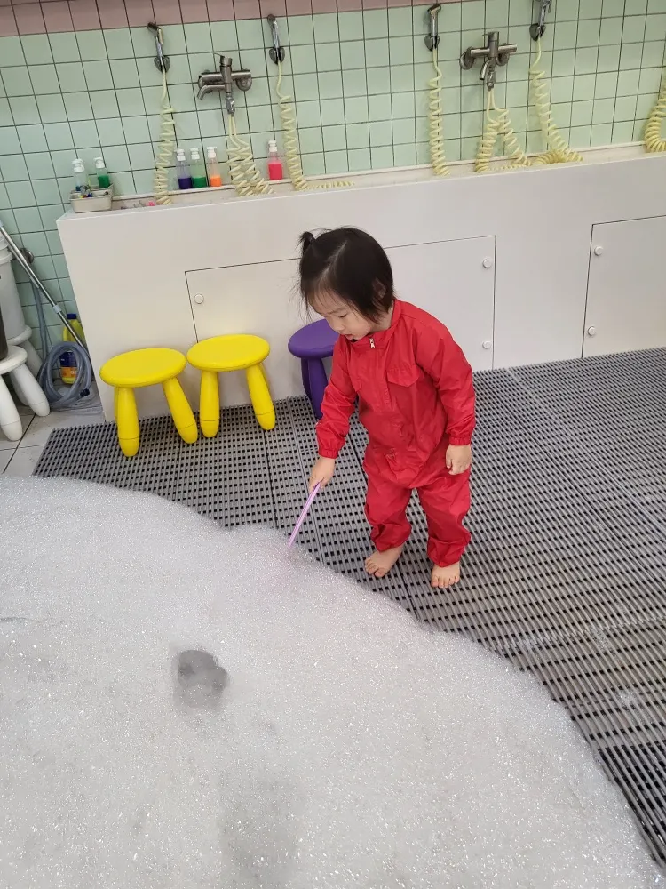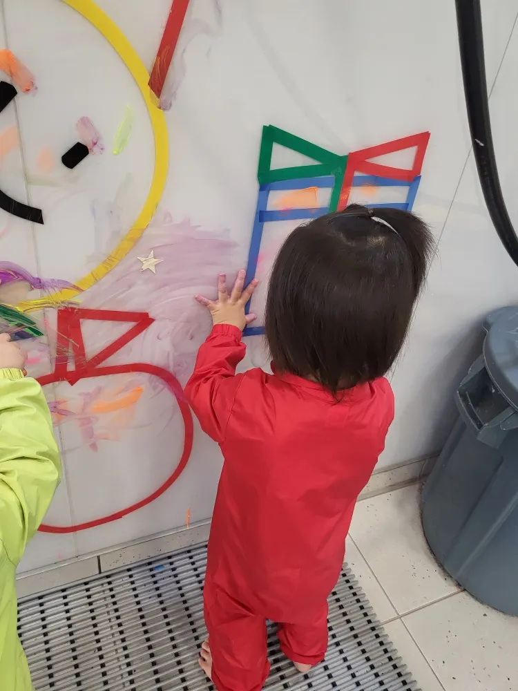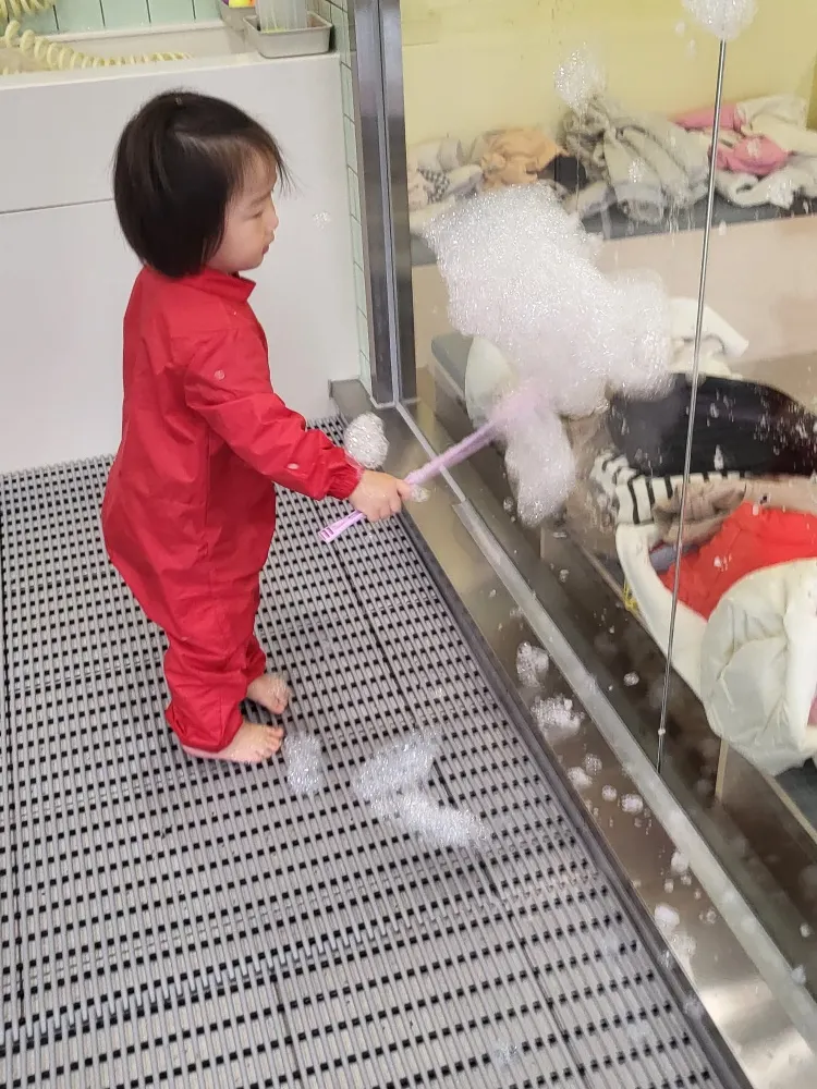 놀이 끝난 후 창문에 나오는 물 바라보며 손도 씻고 창문도 닦으며 마무리~
