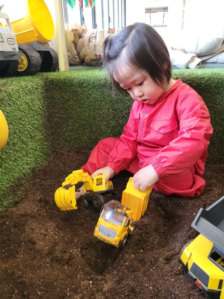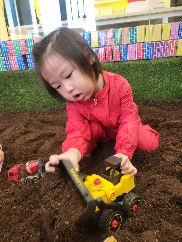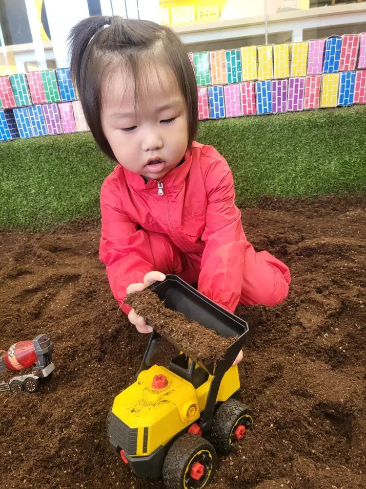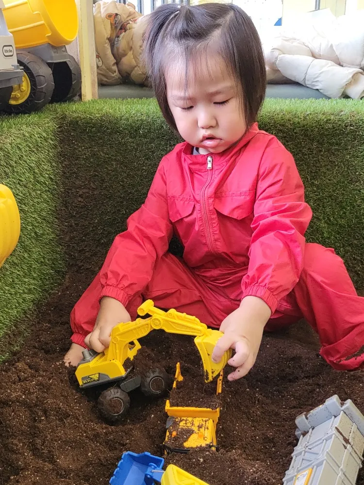 제일 먼저 겉옷 벗고 활동복으로 갈아입고 모래놀이했어요~