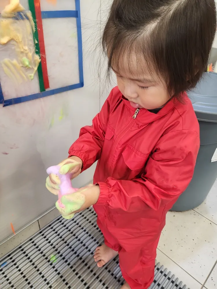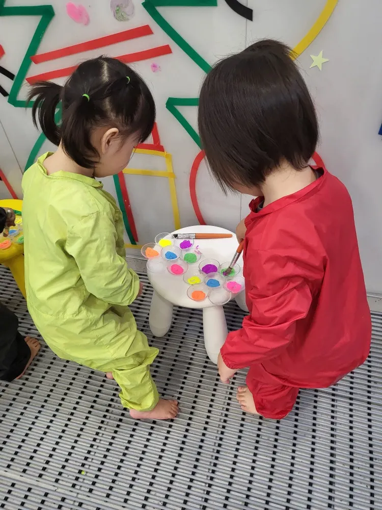 색칠 후 버블물감손에 묻혀 벽에 문질문질~