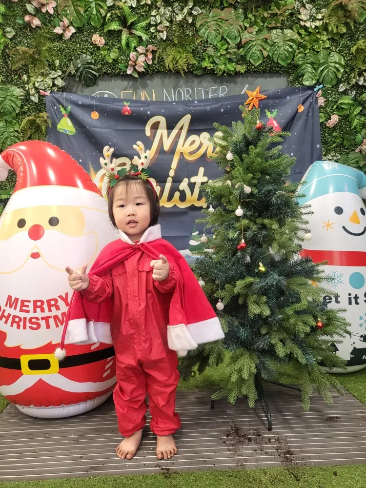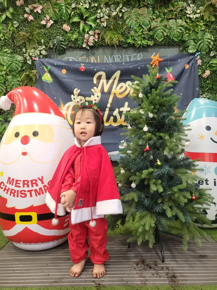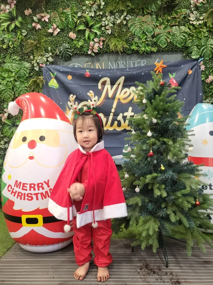 흙놀이하며 산타망토 두르고 머리띠 하고 사진도 찍고~