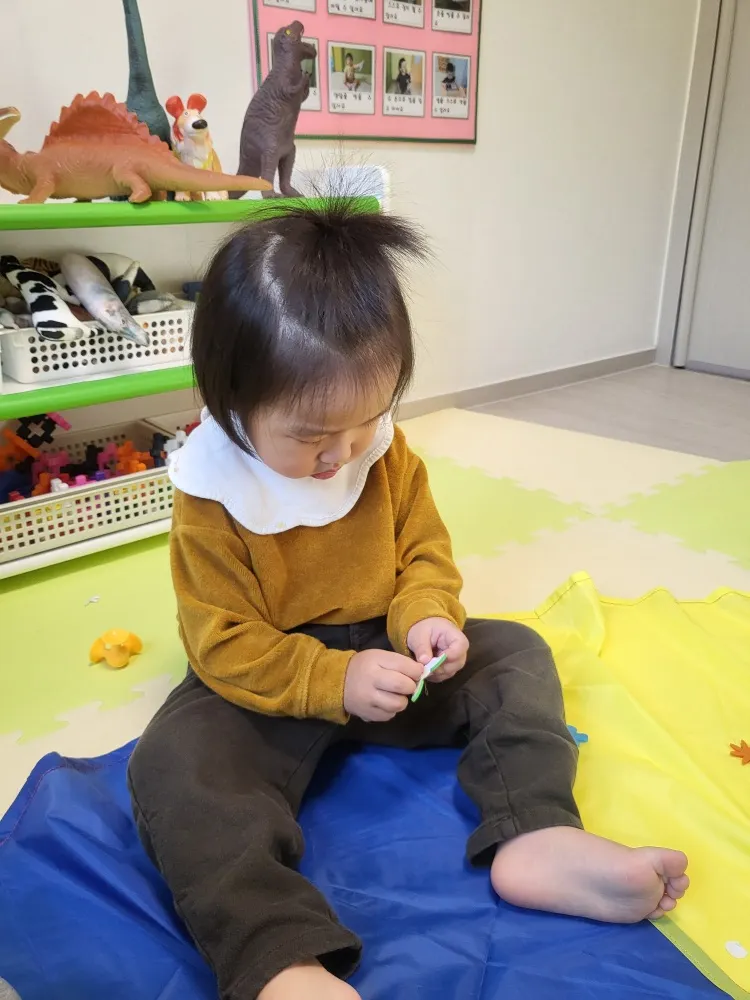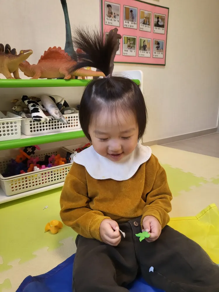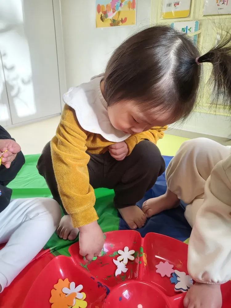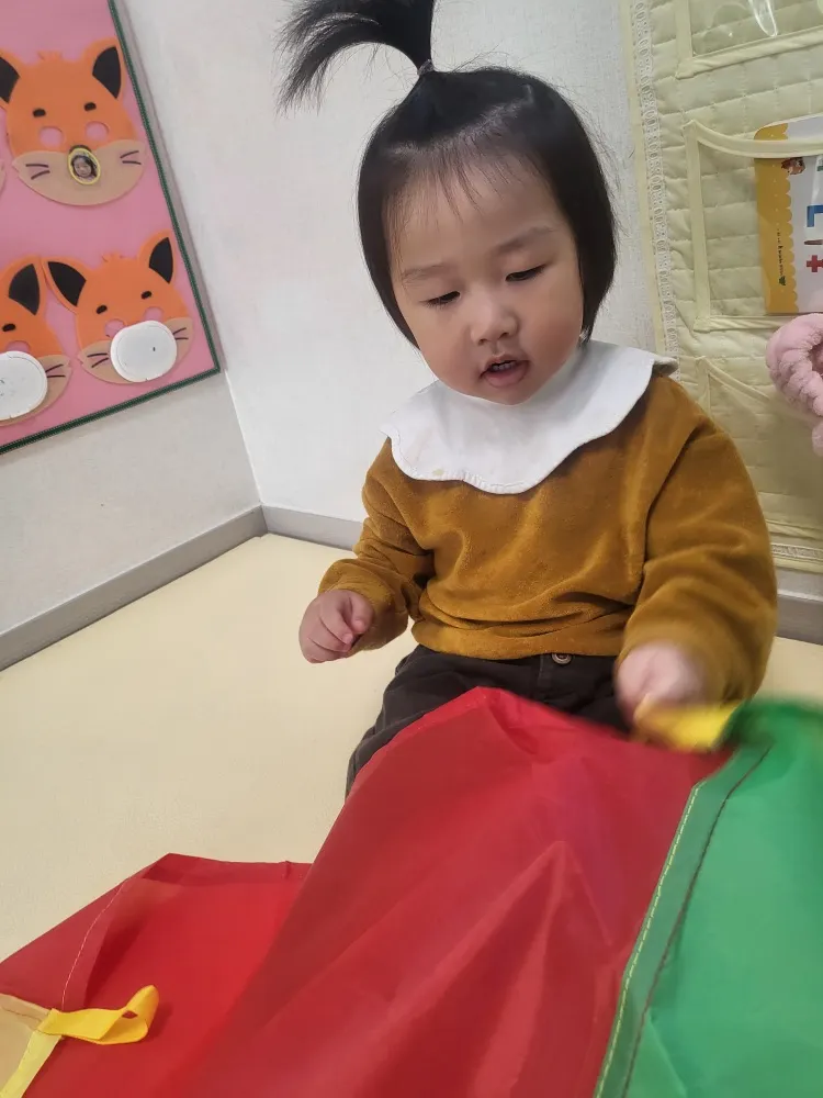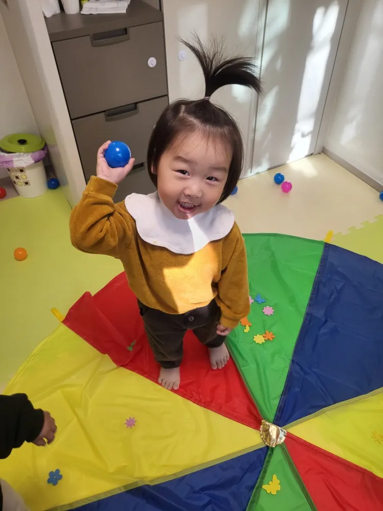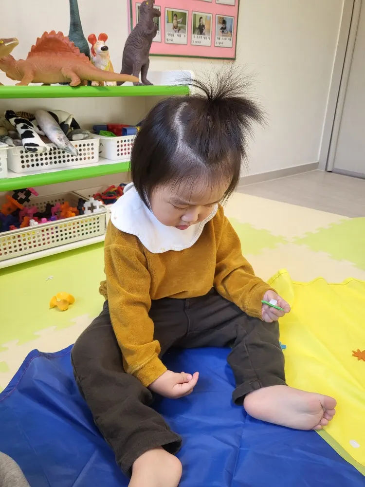 넓게 펴서 자기가 좋아하는 색에 앉아보기도 하고 하고 누워보기도 하고 여러 가지 모양의 스티커 붙여보기 했어요~