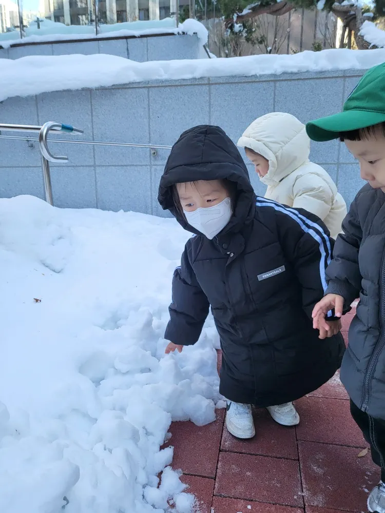 도 보고 하얗게 쌓인 눈보고 들어왔어요