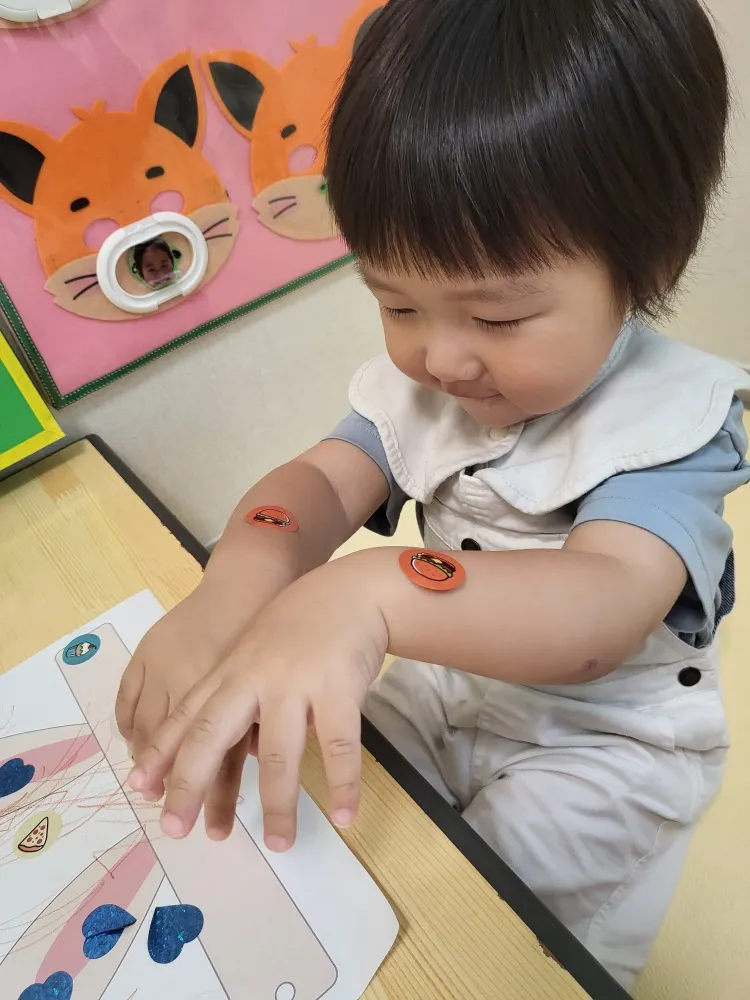 먹으며 계속 씹다 뱉길래 친구들 처럼  냠냠 꿀꺽 해볼까?하니 "윤재도"라고 말하며 뱉지 않고 잘 먹었어요